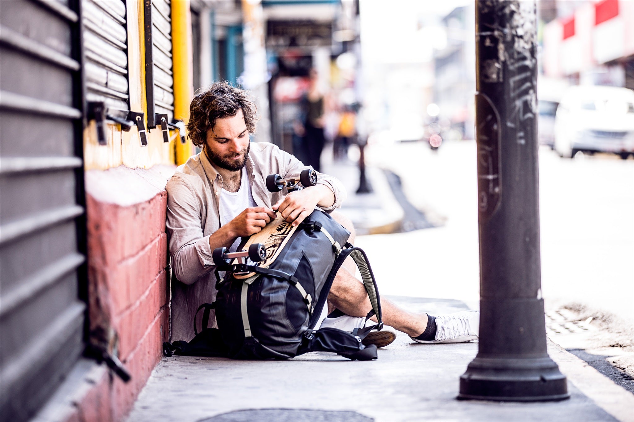 Bastones de trekking, trípode, skateboard, snowboard, raquetas para nieve, esquíes – ¿viajas a menudo con semejante equipo outdoor? Entonces necesitas el Attachment Kit for Gear: este juego con diferentes opciones para la sujeción permite colocar tu equipo deportivo de manera sencilla y segura en tu mochila, sin ruidos constantes y sin que se mueva. Todos los soportes pueden sujetarse en las Daisy Chains o las correas de tensión de la mochila. Los esquíes pueden fijarse tanto en forma de A como también diagonalmente.